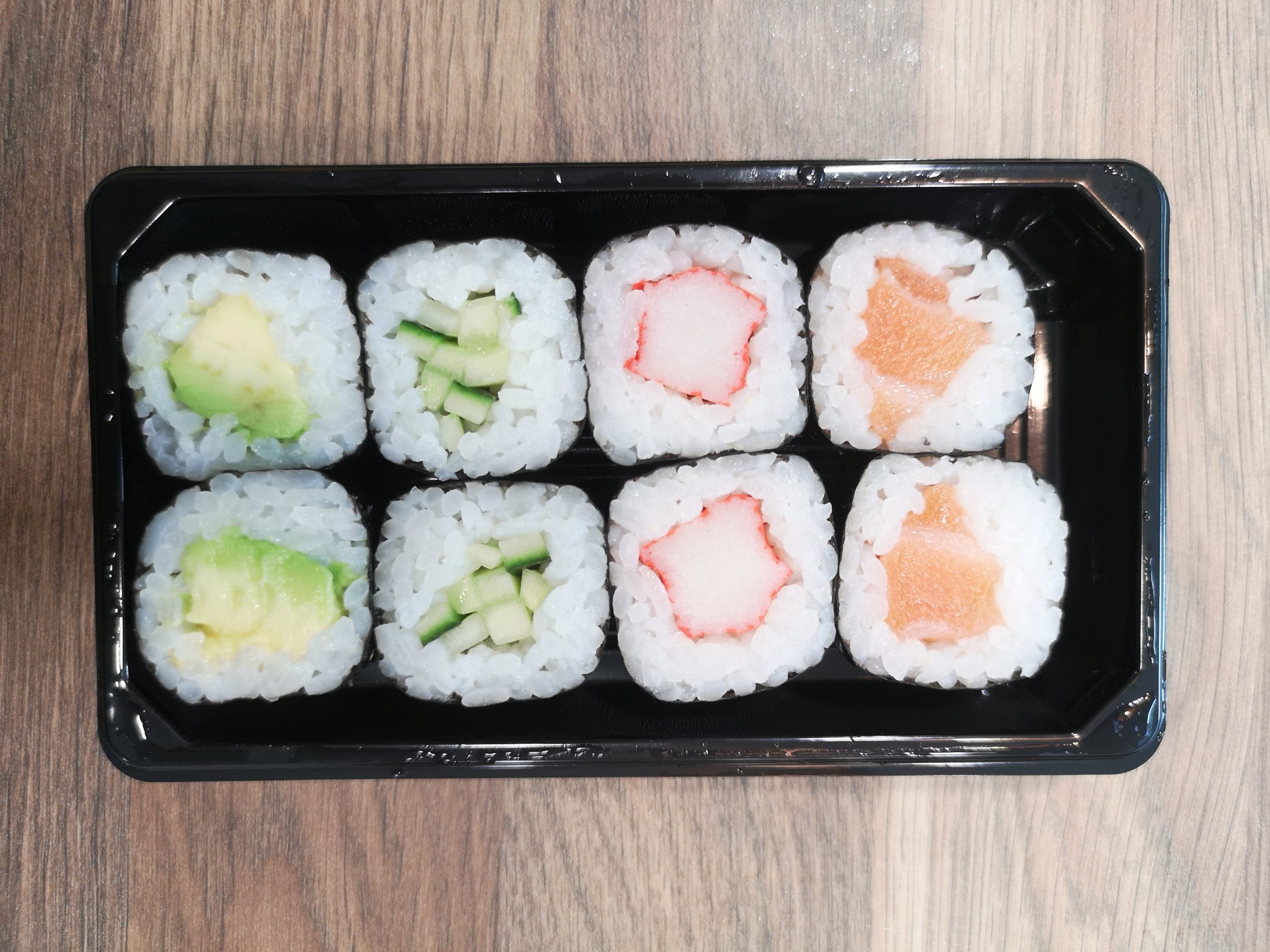 mit Lachs, Avocados, Gurke, Surimi. Je 2 Stück