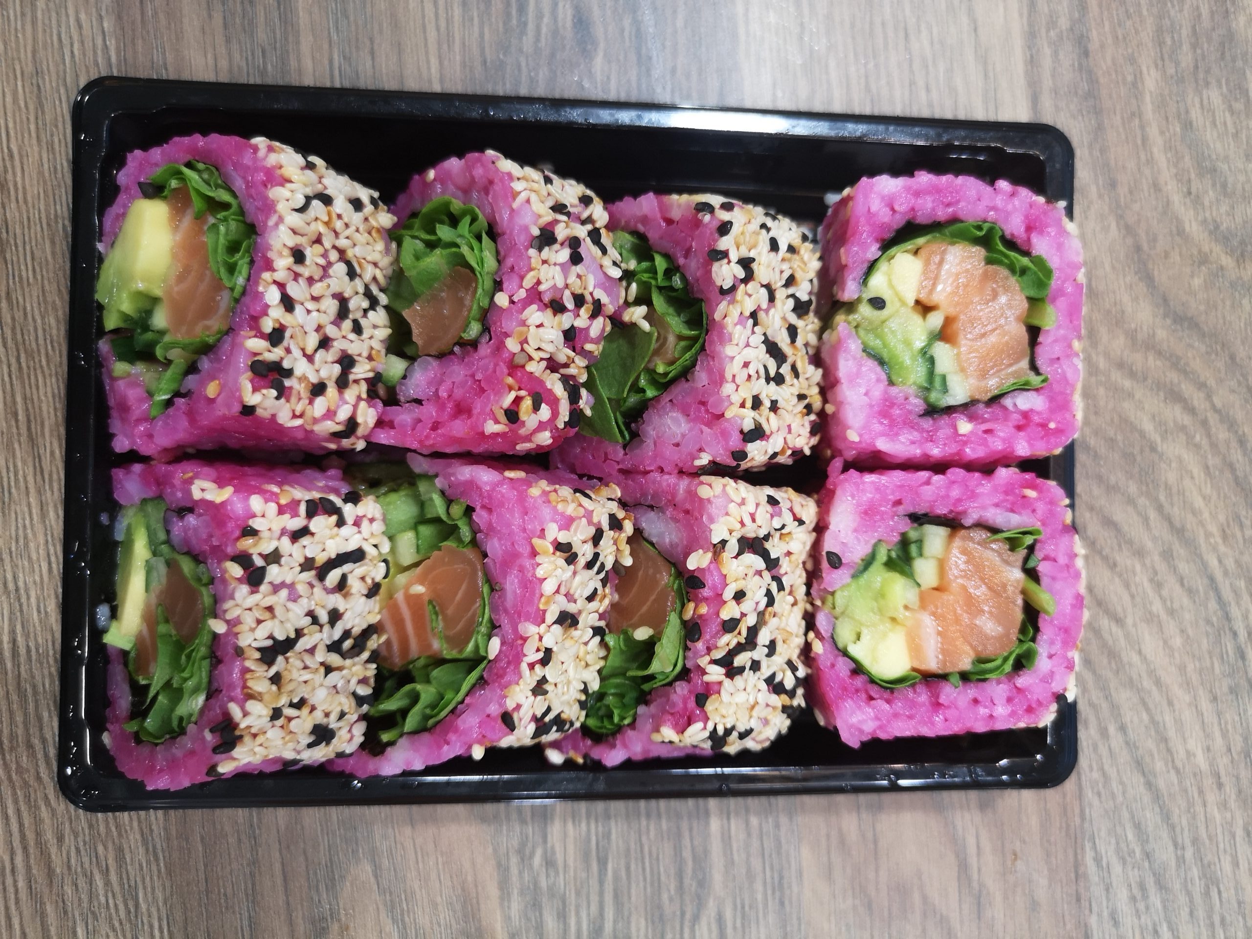 mit Avocado, Rucola mit Sesam verziert – 8 Stück