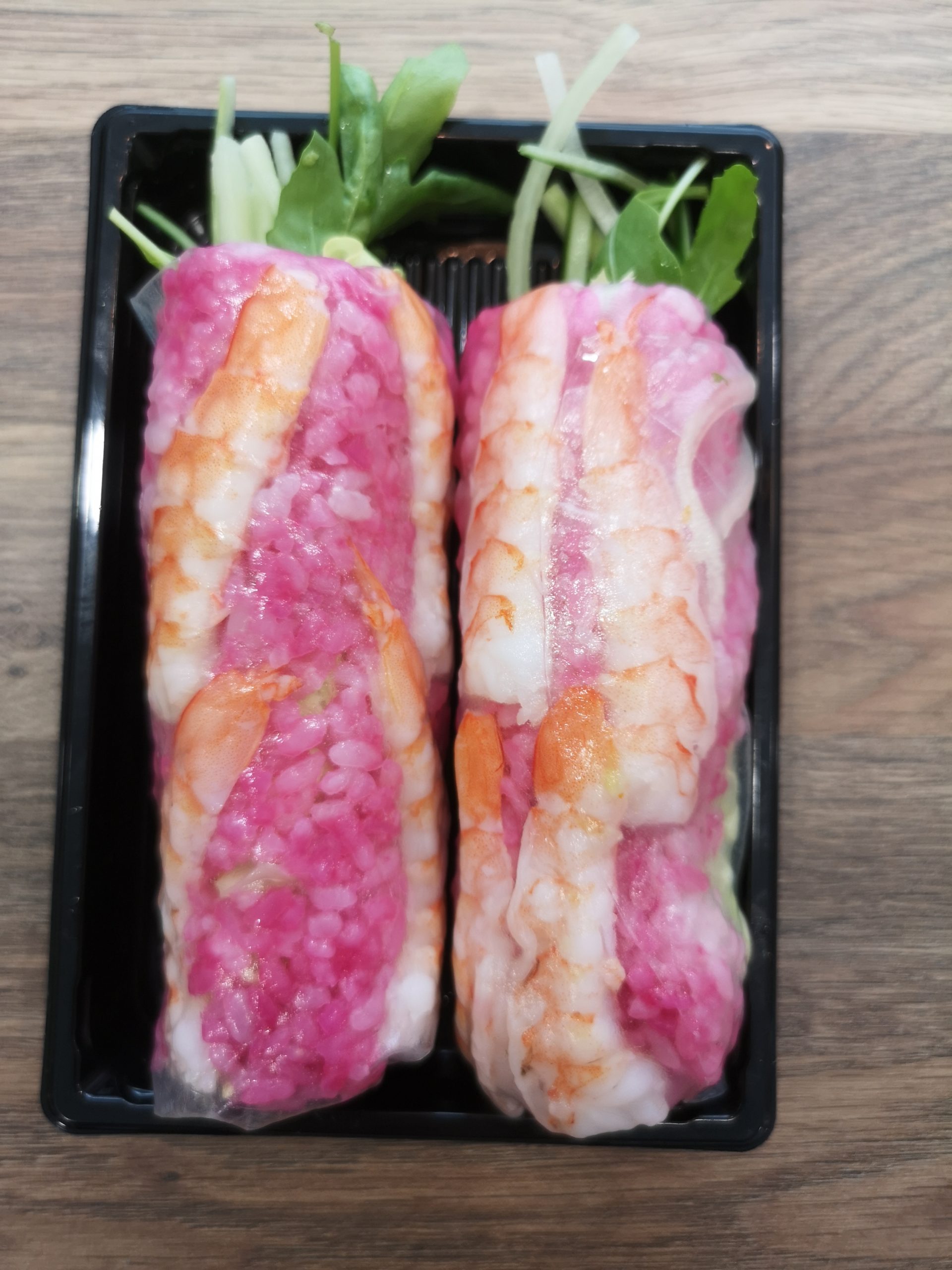 mit Avocado, Gurken, Karotten, Rucola und Sesam